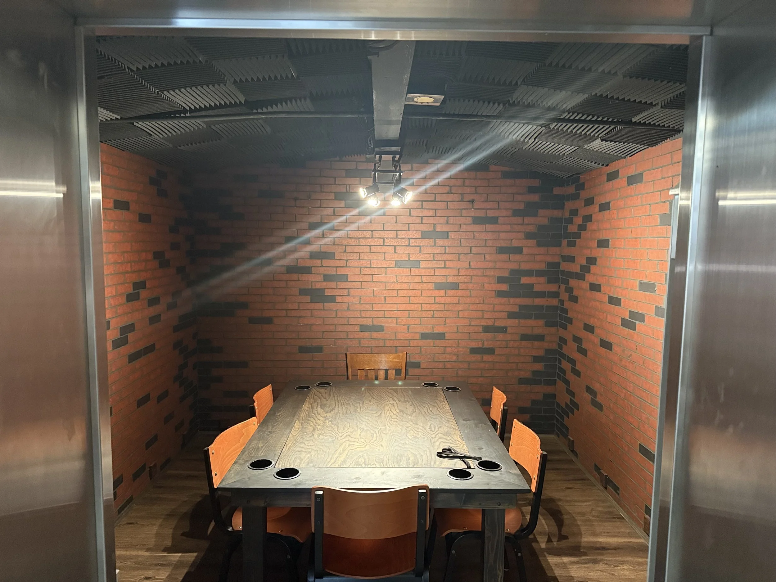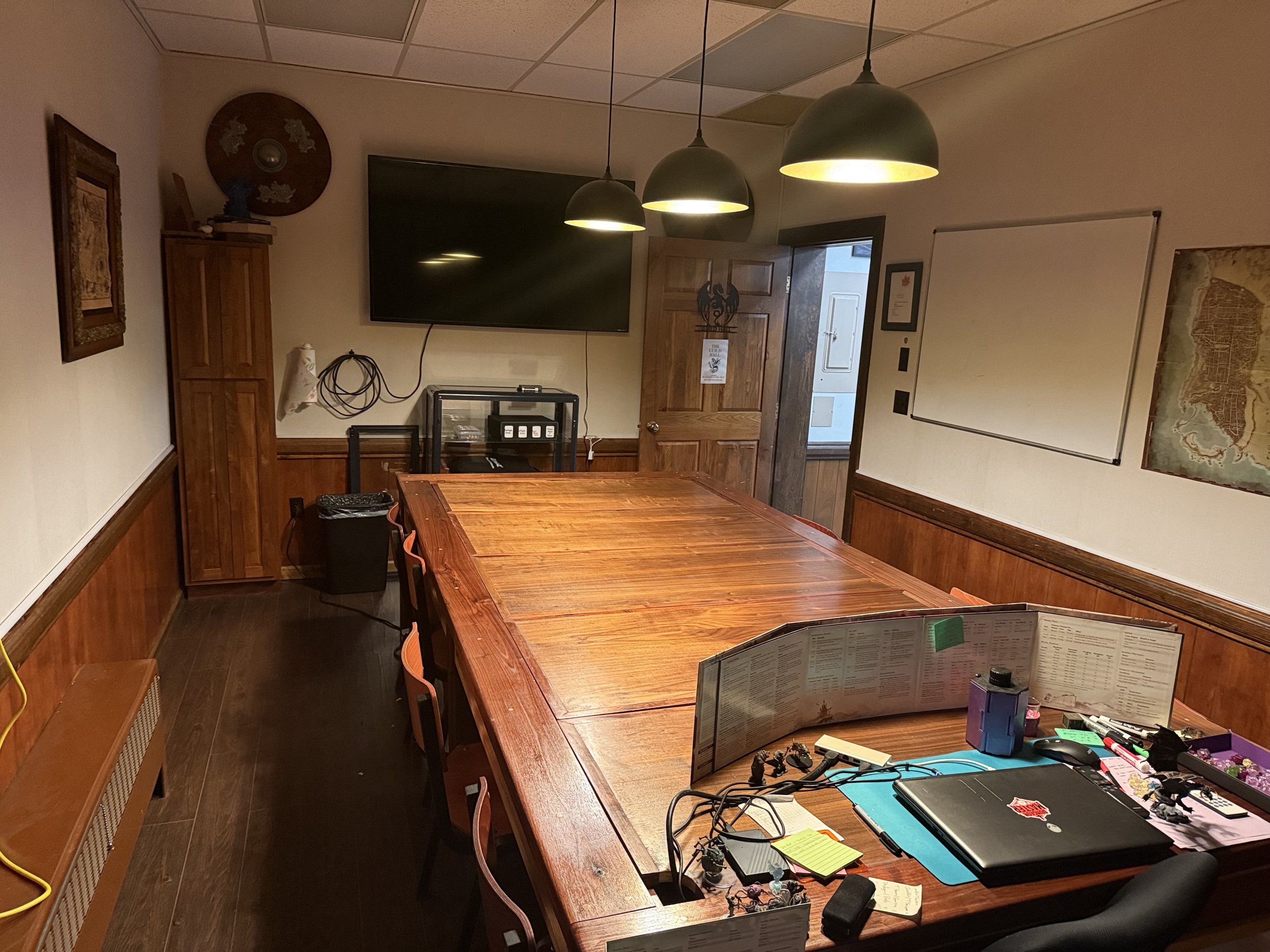 The Guild Hall seats up to 10 people and offers our guests extra privacy, a 65” monitor, as well as fun LED lighting.